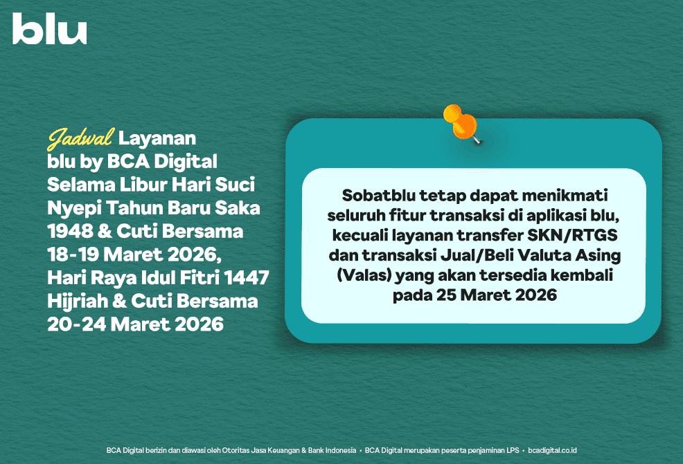 - Lakukan transaksi menggunakan promo blu Travel Week min. Rp 1 Juta (berlaku akumulasi dengan promo bTW lainnya)